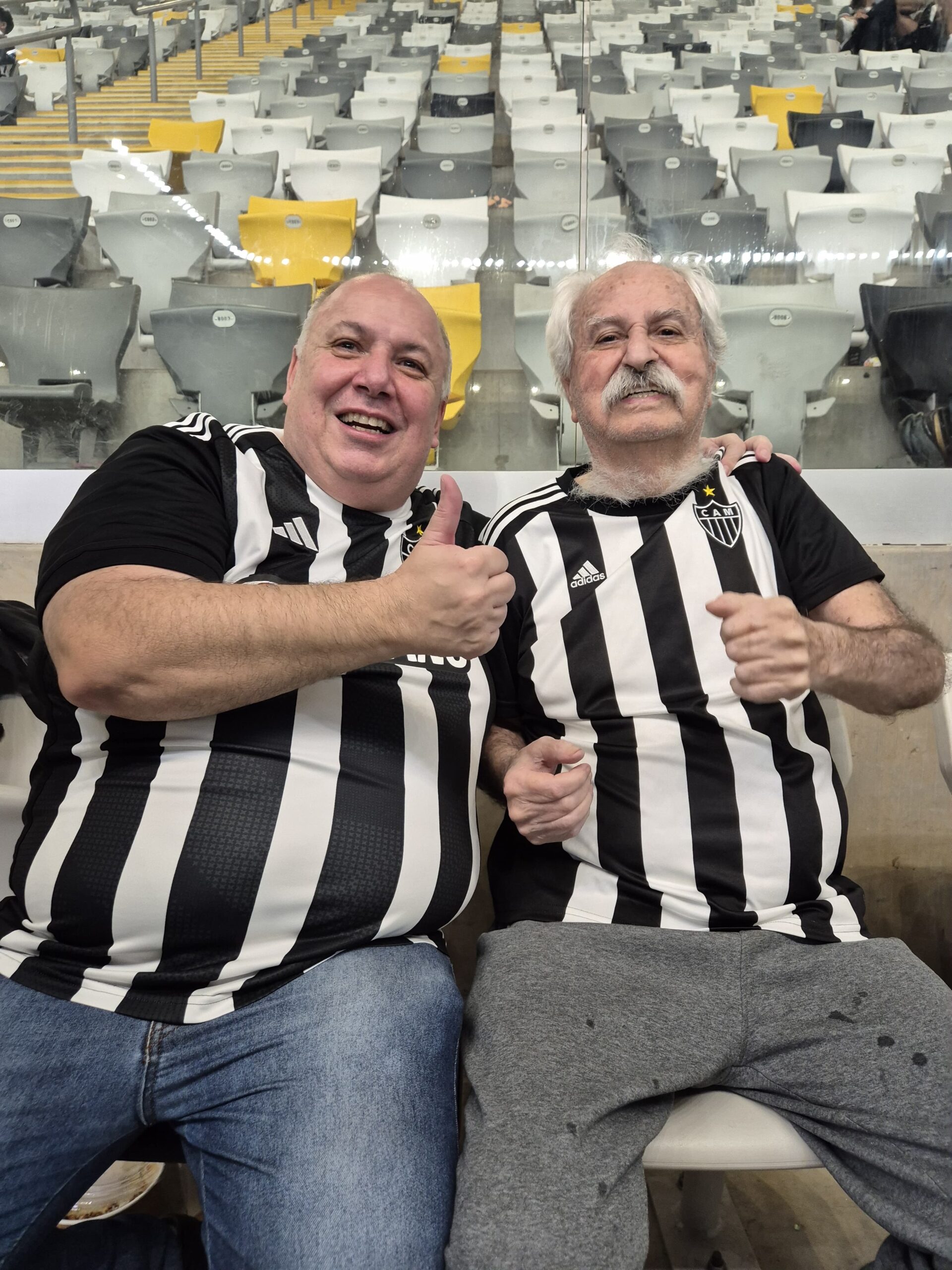 Jornalista Sérgio Moreira (à esquerda), com Márcio Rocha, em jogo do Galo na Arena MRV,