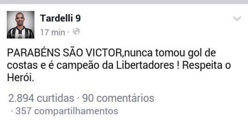 Eu não tinha visto esta twittada dele após o clássico de domingo. Recebi ontem pelo whatsapp. Segundo o leitor Mark Morais, a quem agradeço, “essa não é a página oficial do Tardelli. Essa é uma página do Facebook criada pelos fãs do craque”. E o meu amigo Delegado de Polícia Osvaldo Wiermann Junior , a quem também […]