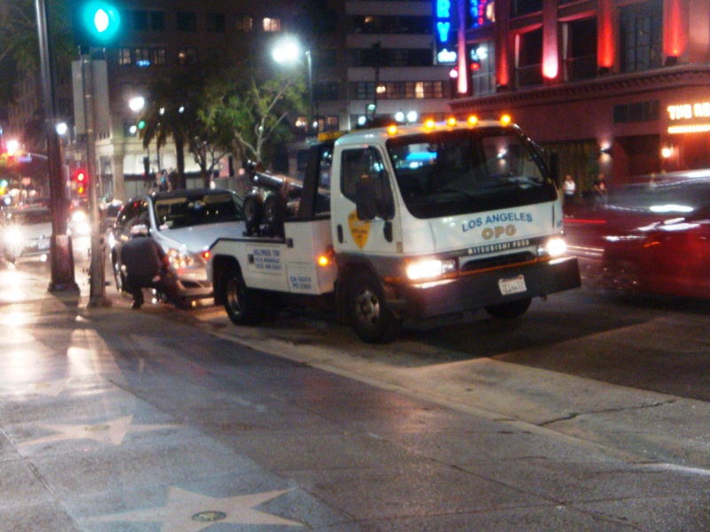 Estacionar em local proibido, durante o dia ou na madrugada, em qualquer lugar, é garantia de reboque imediato nos Estados Unidos. Como este carro nas imediações da Calçada da Fama, em Hollywood/Los Angeles.