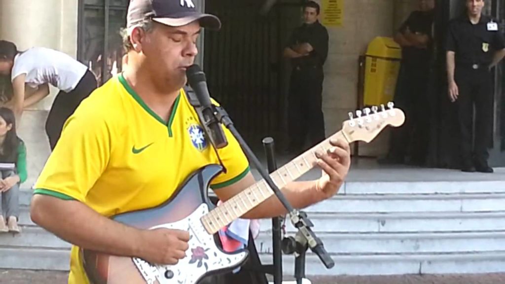 Julho de 2014, São Paulo tomada pela euforia da Copa no pré-7 a 1. Como tantos artistas que aproveitam a cidade cheia de turistas, um guitarrista vestindo uma camisa da seleção brasileira toca na rua uma versão cover de “Sultans of Swing”, do Dire Straits.