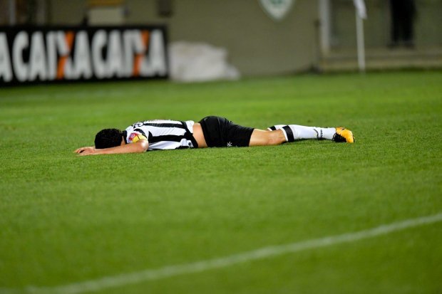 17. O Atlético entrou em campo ontem com menos quatro, Robinho, Elias, Cazares e Valdívia não fizeram nada. O Elias conseguiu, além de ser expulso, ficar em impedimento num lance em que o Atlético recuperou a bola na defesa e ele estava parado na ponta esquerda. E mais uma vez os volantes estavam sempre a frente da linha da bola, ou seja sempre correndo atrás dos adversários. O único jogador que possui uma regularidade neste time é o Fábio Santos, pode não ser brilhando mas nunca fica abaixo da média como o resto do time.