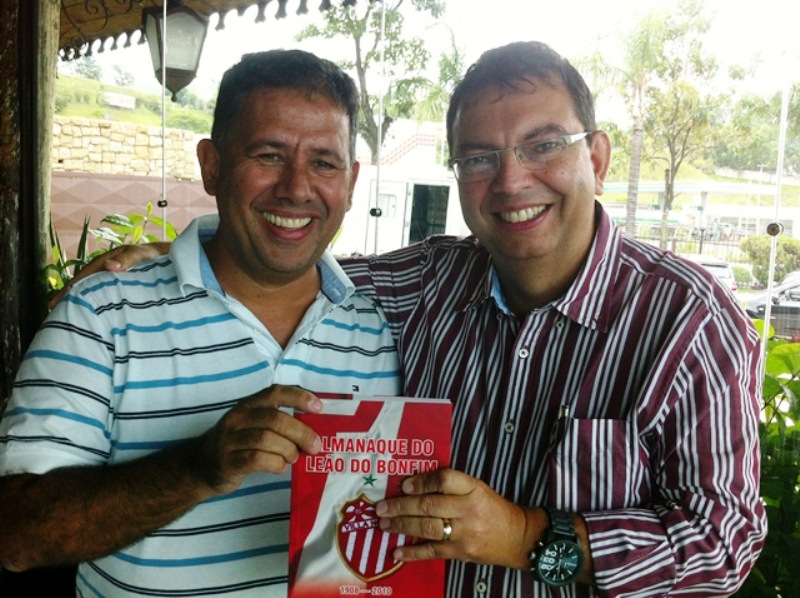 Roberto Tibúrcio (esq.) com o autor do livro “Almanaque do Leão do Bonfim”, jornalista Wagner Augusto Álvares de Freitas