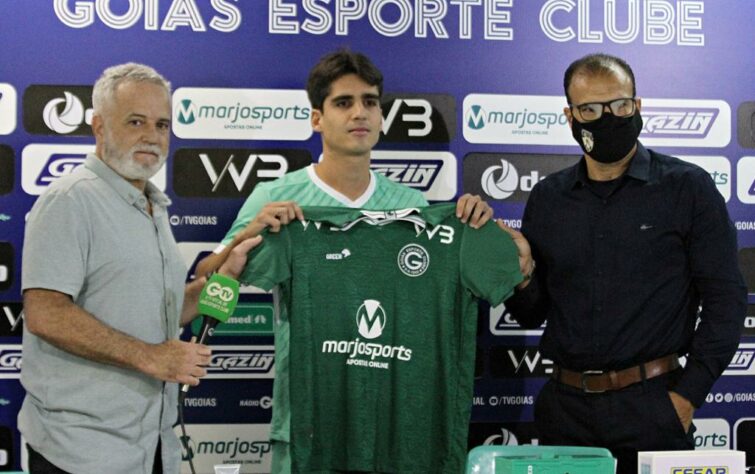 Em foto de Rosiron Rodrigues/Goiás E. Clube, Gustavo Blanco no dia que chegou ao clube em 2020, emprestado pelo Atlético