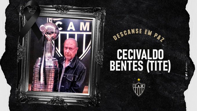 Com extremo pesar, o Clube Atlético Mineiro comunica o falecimento do conselheiro grande-benemérito Cecivaldo Gonçalves Bentes, o Tite, figura abnegada e de alta relevância na história do clube.