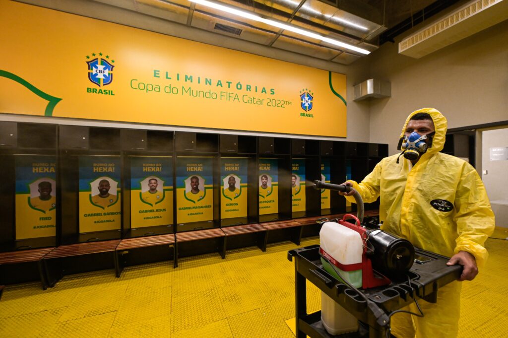 Fotos: @Mineirao – Desinfecção contra Covid nos vestiários do estádio para o jogo de logo mais