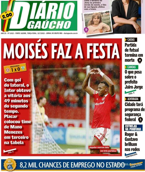 A primeira página do Estado de Minas destacou hoje a corrida dos três pela próxima fase e os milhões em prêmios da competição. O Cruzeiro já soma R$ 7,67 milhões pelas classificações a partir da primeira fase. Se passar esta noite, chegará a R$ 11,57 milhões. O América fez ótimo placar no Independência, 3 […]