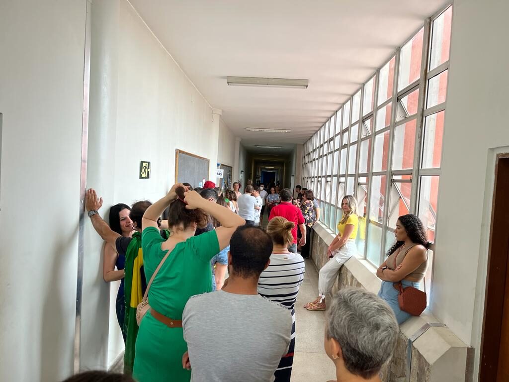 Aí, chego na Seção 45 e me deparo com fila enorme. Para piorar, parada! As urnas deram pau!