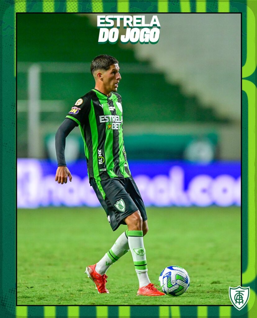 twitter.com/AmericaFC1912: “O meia Breno marcou seu primeiro gol com a equipe profissional e foi eleito o destaque do jogo com mais de 50% dos votos!” Foto: Gabriel Morais/Mourão Panda /América