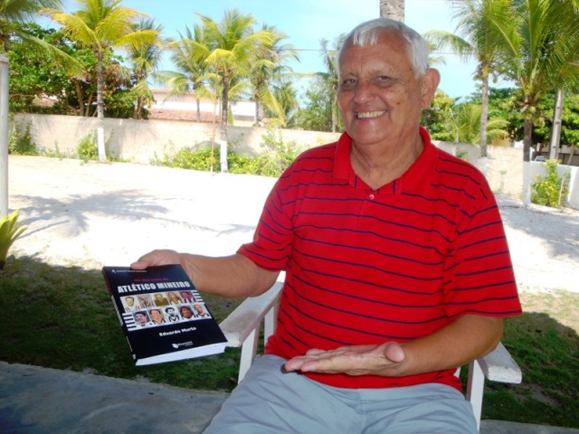 Foto que fiz do Willy em janeiro de 2013, na varanda da casa dele em Alcobaça/BA, onde ele morava desde 2010. Levei para ele o livro do jornalista e escritor Eduardo Murta, lançado naquela época, sobre os dez maiores jogadores da história do Galo.