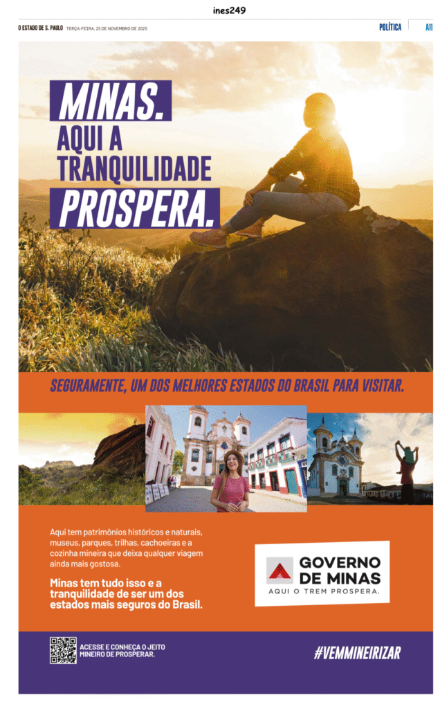 Parece ter sido sincero e convencido de que estava equivocado, já que para a satisfação da comunidade dos veículos impressos, o governo de Minas comprou uma página do jornal O Estado de São Paulo, o “Estadão”, na última terça-feira, 25, para divulgar o Turismo do nosso estado.