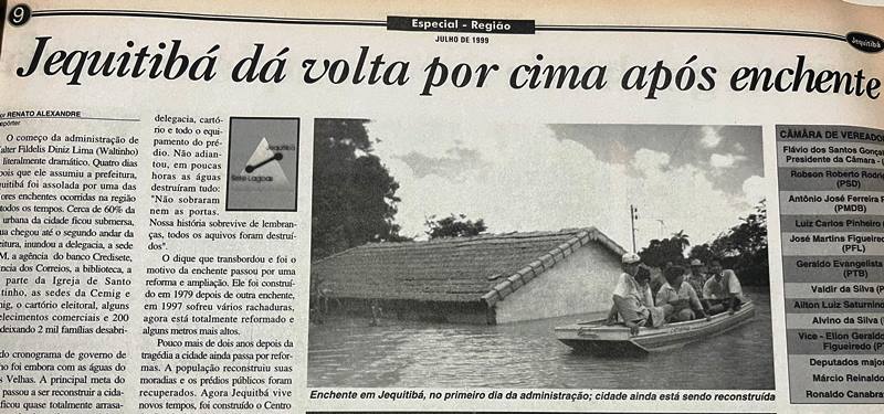 Nestes 34 anos o SETE DIAS cobre os fatos marcantes ocorridos na região. Como essa que foi uma das maiores enchentes da história de Jequitibá, quando o Rio das Velhas transbordou, rompeu diques e a grande parte da cidade ficou submersa.