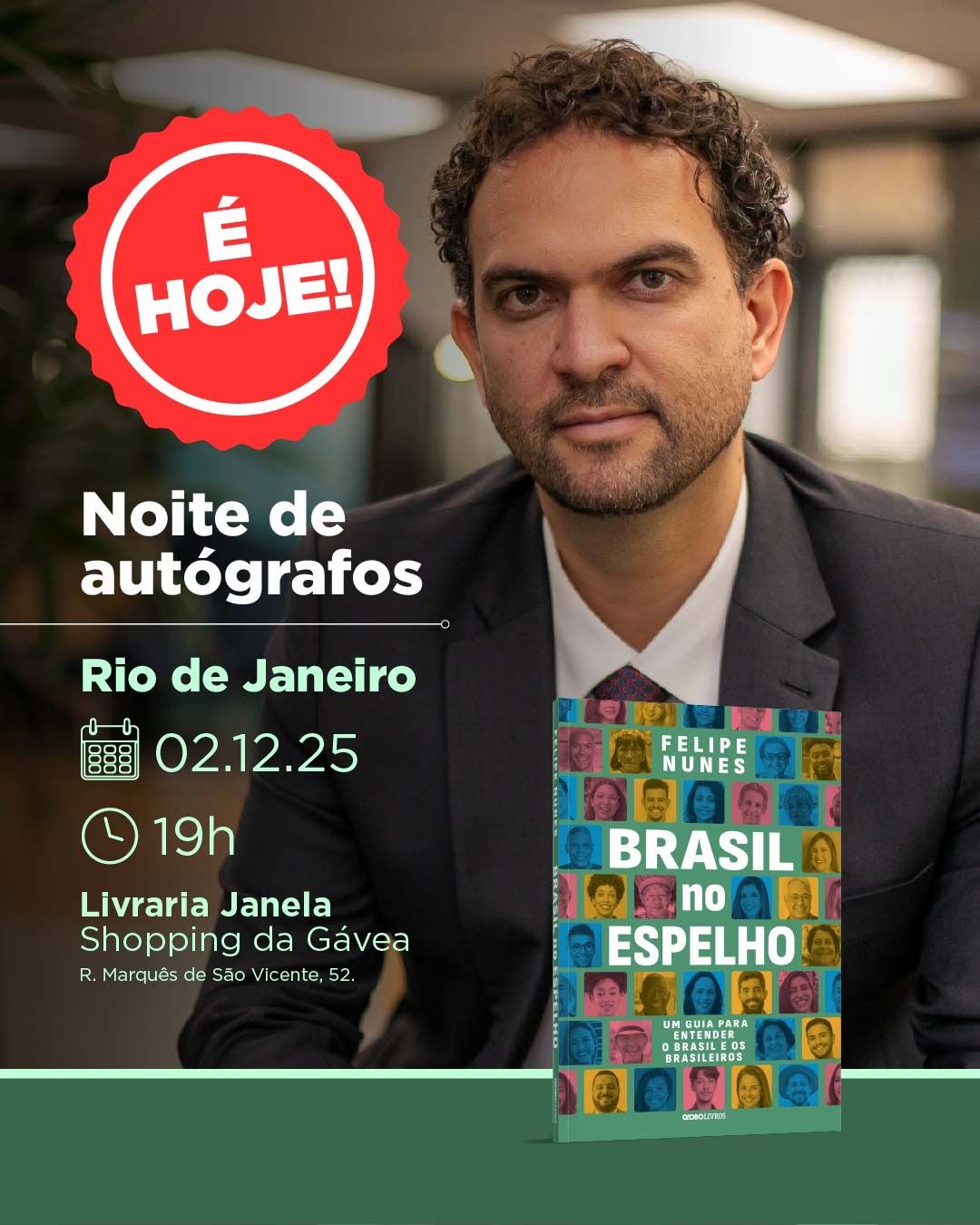 É até sacanagem da minha parte colocar essa qualificação “virtude” para milhões, e “defeito” para outros tantos, de “atleticano”, justamente no título desse post para falar que o Felipe Nunes lança esta noite, 19 horas, no Rio, o livro “Brasil no Espelho: um guia para entender o Brasil e os brasileiros”, pela GloboLivros, que já em pré-venda na Amazon.