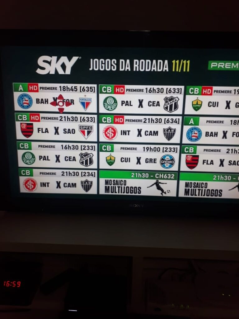 A SKY informa que daqui a pouco tem, nos canais 234 e 634, Internacional x Atlético, pela Copa do Brasil. Eu hein!?